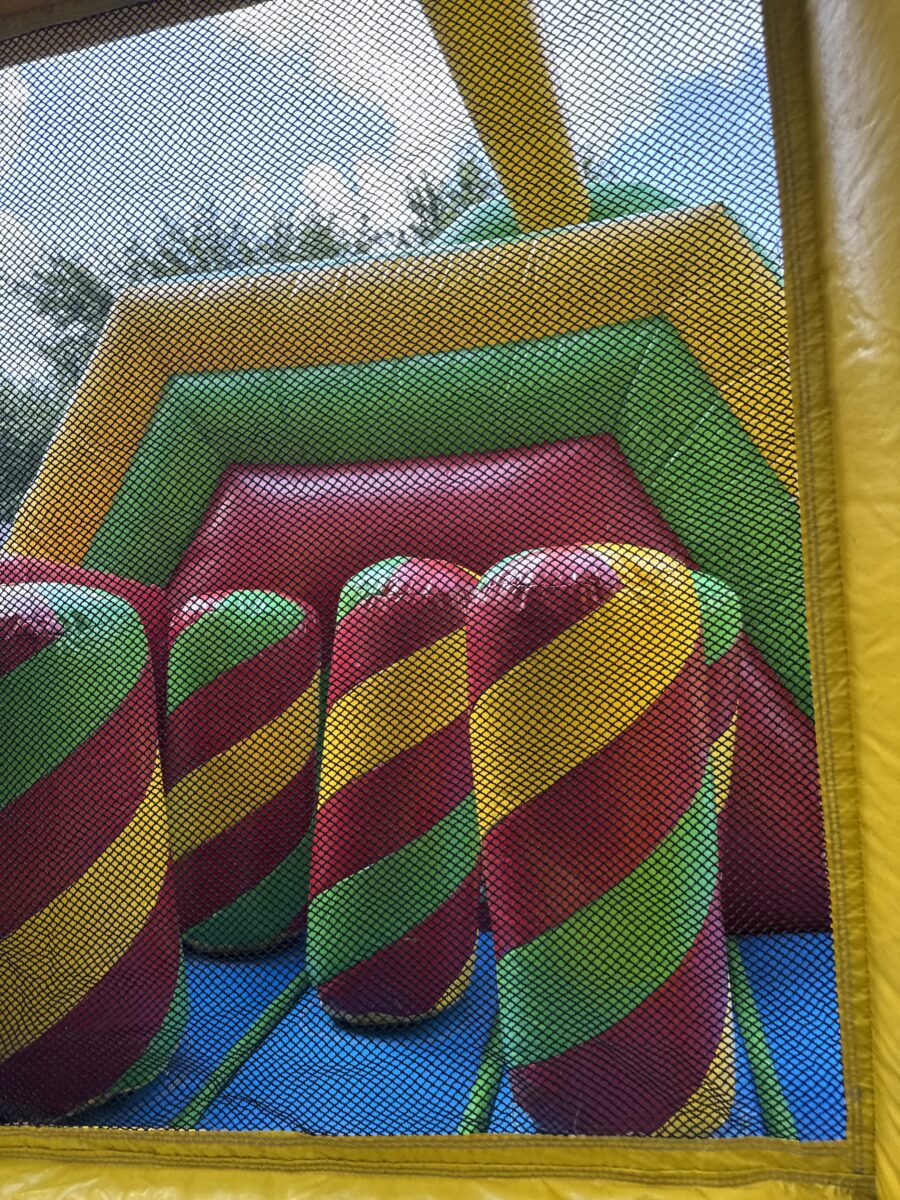 With dual entry points, multiple participants can enter and exit at the same time, helping to keep lines moving and the fun flowing. Bright colours and a classic funhouse design make this inflatable an inviting centerpiece at any event.