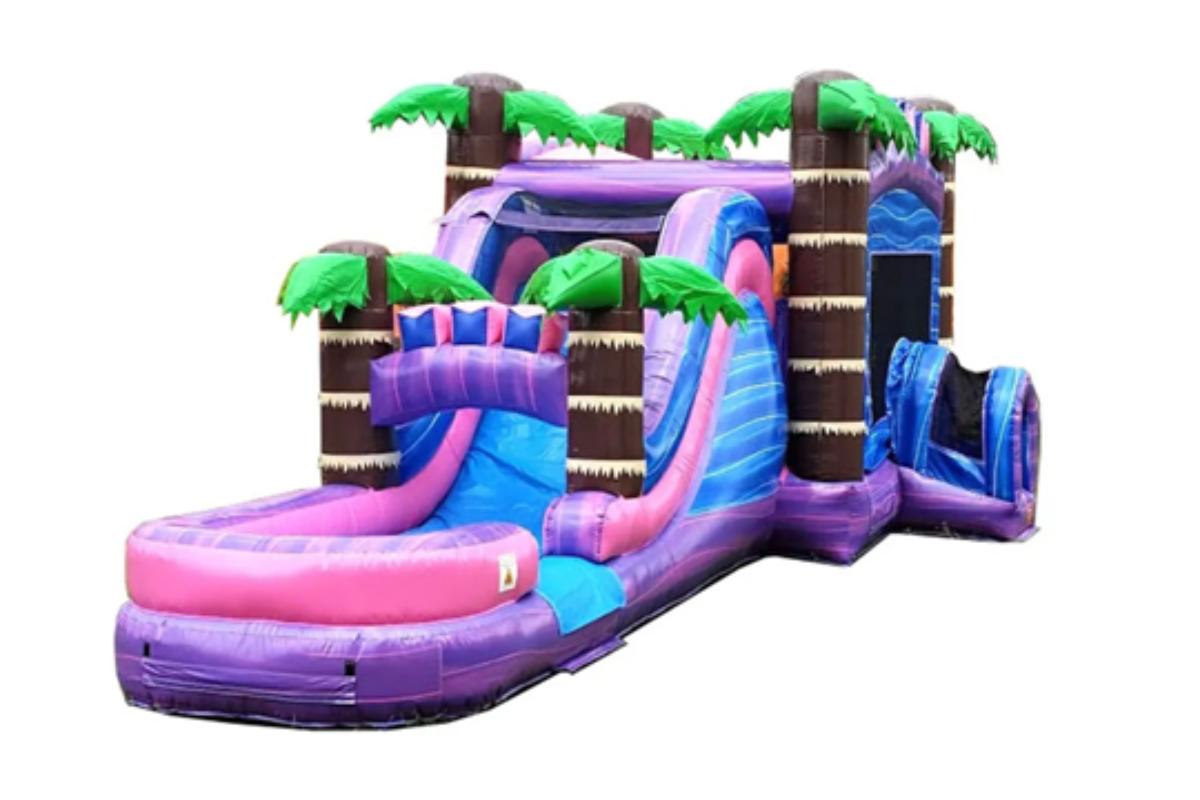 Introducing our Purple Tropical Bouncy Castle DRY Slide Combo