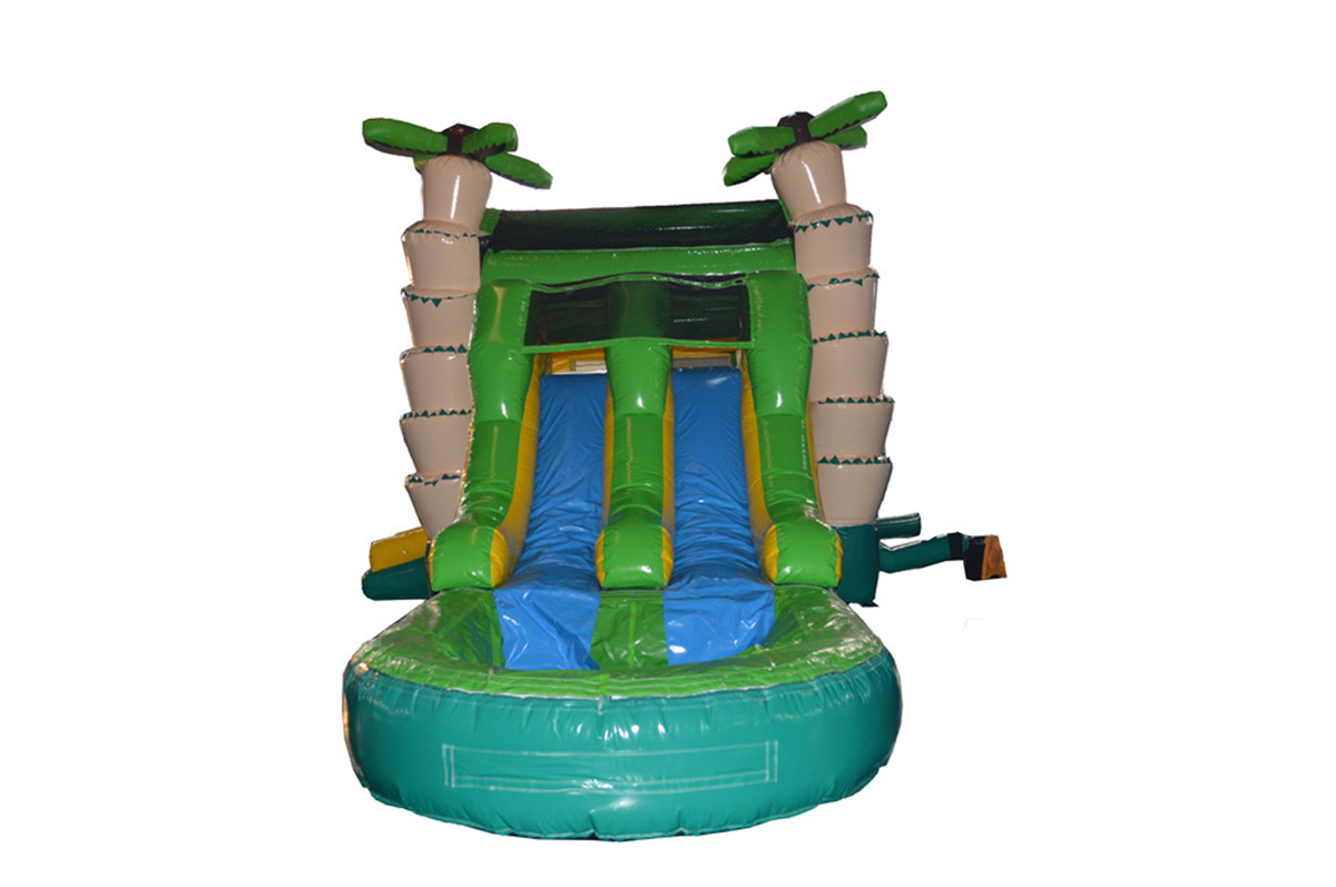 Decorated with inflatable palm trees and tropical accents, the Tropical Wet Combo creates the perfect backdrop for summer parties, backyard celebrations, and special events. Whether kids are racing down the slides or bouncing in the shade of palm trees, this inflatable brings laid-back island vibes and nonstop excitement to your event.